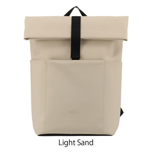 Hajoシリーズ ミディアムバックパックの一回り小さい12Lのサイズです。ロールトップはスナップボタン式開閉になっているのでセキュリティ面でも安心。ショッピングやちょっとした外出にも便利なコンパクトサイズ。