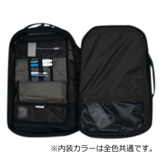 仕切りに加えてメッシュ素材や裏地・ファスナー付きなど大小豊富なポケット配置で、1-2泊の出張・旅行の荷物もパッキングしやすいモデル。