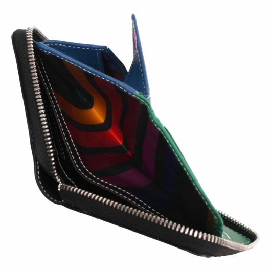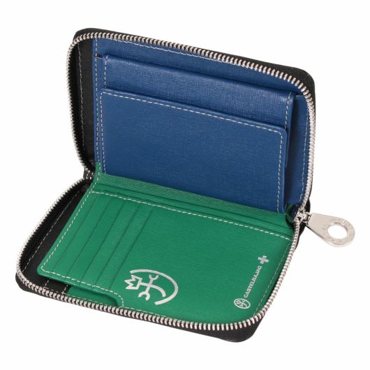 艶感による陰影が魅力のエンボスレザーを使用したベーシックな小物シリーズ。凹凸のあるグログランで織りあげたブランドを象徴するレインボーカラーのジャガード裏地を使用しており、外装とのギャップ感が価値観と個性をより高めます。