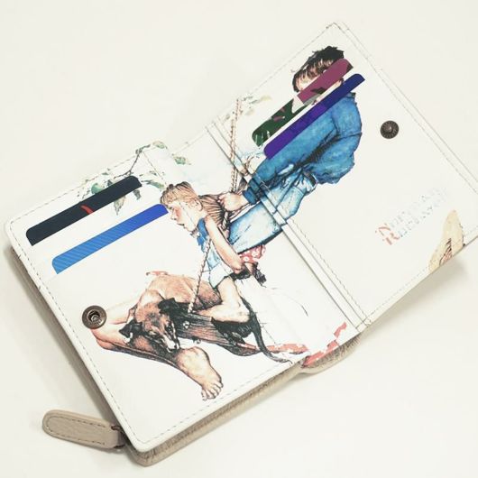 ノーマンロックウェルイラストシリーズ 20世紀のアメリカ合衆国の画家、イラストレーター。軽いタッチでアメリカの市民生活を描き、アメリカでは幅広い大衆的人気をもつ。ニューヨークで生まれ、美術学校を出てから、アメリカ・ボーイスカウト協会の雑誌などに絵を書き始める。彼の絵は1916年から1963年にかけて『サタデー・イーブニング・ポスト』紙の表紙を飾ったが、とりわけ1940年代から1950年代のものが人気があるようです。彼の絵は商業主義的で一部の近代美術批評家からはまじめな画家とは扱われず、イラストレーターと呼ばれることもあるが、アメリカの市民生活の哀歓を巧みに描き、アメリカ人の心を捉えているため、最もアメリカ的な画家のひとりともいえる存在だといいます。 ノーマンロックウェル氏のイラストを、そのまま財布のデザインに落とし込んだシリーズ。 小銭入れは外側のL字ファスナーで収納。 中を開いた絵柄のところにカードを収納できます。 ノーマンロックウェルらしい楽し気な雰囲気の絵柄がハッピーな気分に。プレゼントにもおススメです。