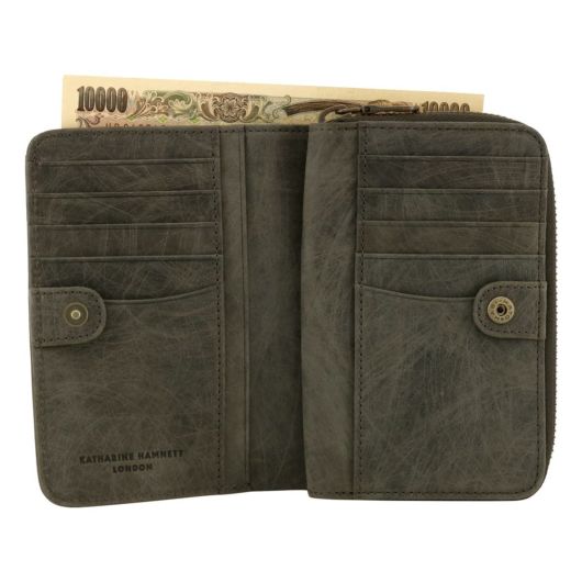 背面:ラウンドファスナー式小銭入れ(仕切り有)×1