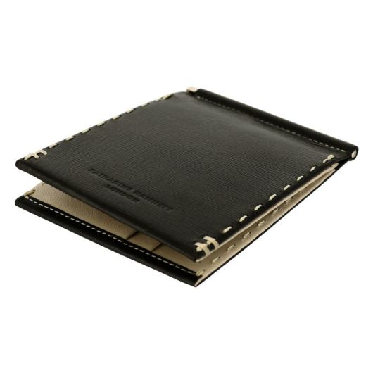 手縫い仕上げと遊び心のあるカラーコンビをそのままに使用する材料をアップグレードしました。表革は、国産の牛ヌメ革をアンティーク調に染め上げ、さらに複雑な型押しや揉み加工を施す事により無二の質感になっています。内装生地にはリサイクルポリエステル繊維ECOPETを使用、環境問題に取り組むキャサリンハムネットの意識を体現しております。