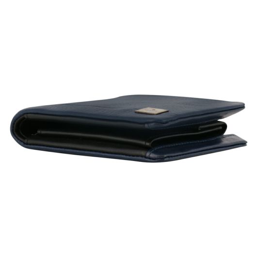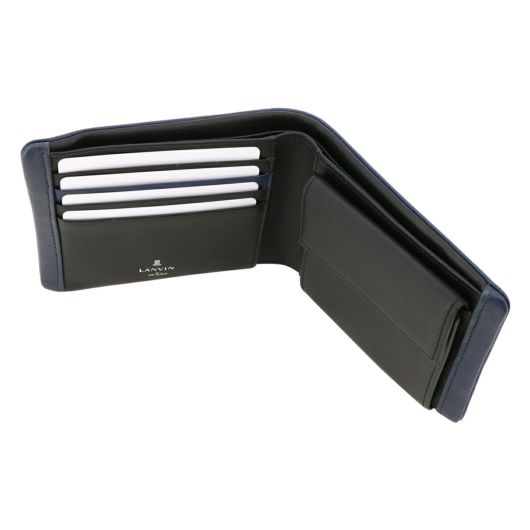 姫路のタンナーで鞣された、国産レザーの風合いを活かして作られたランバンオンブルーの二つ折り財布。革の特徴をデザインに表現するため、縫い代の目立たない「袋縫い」で縫製しています。また、この縫製方法は、頑丈に仕上がる事も特徴の一つです。本体パーツには、シンプルになり過ぎないように、ブランドロゴが入ったオリジナルのメタルブローチをアクセントに加えています。