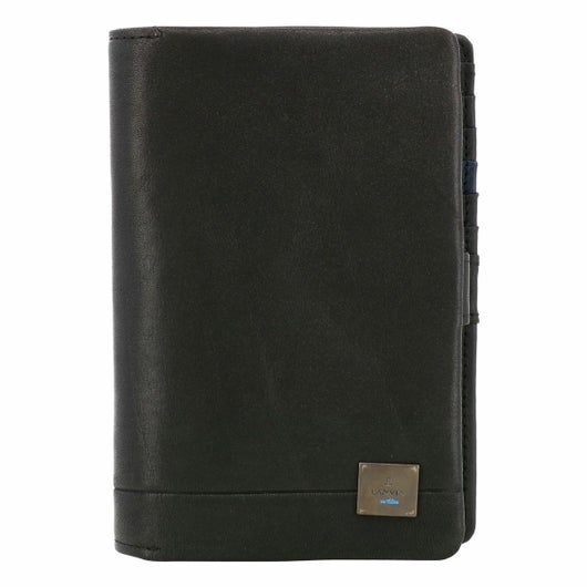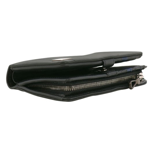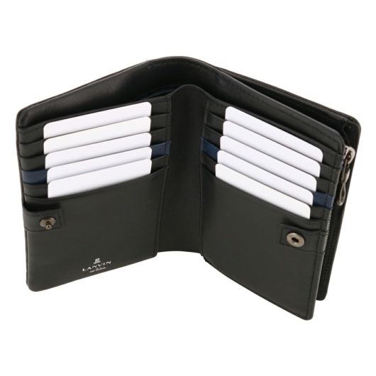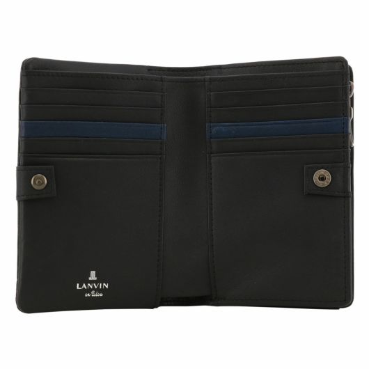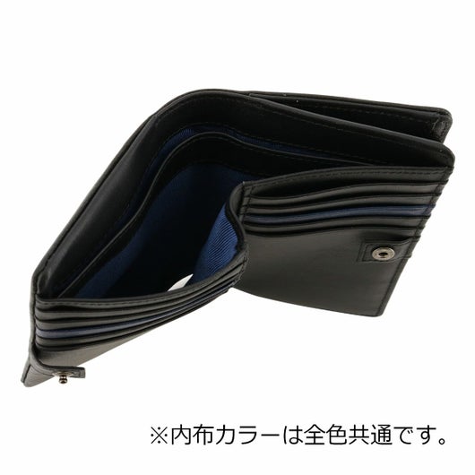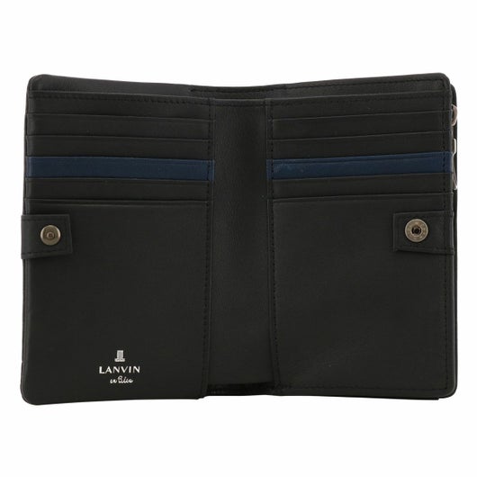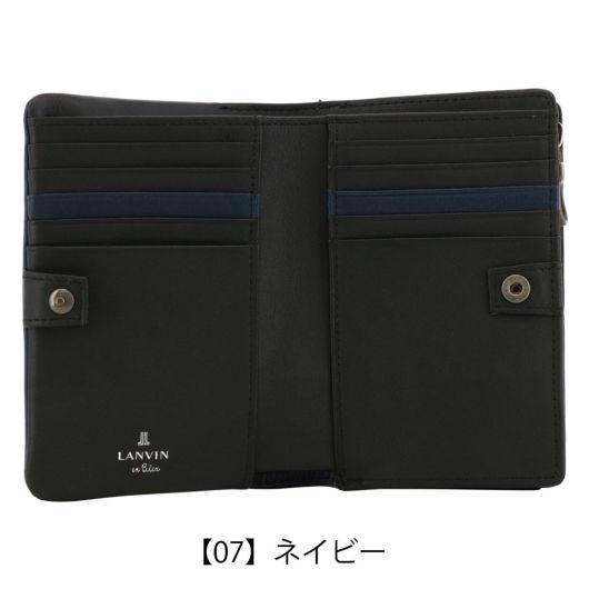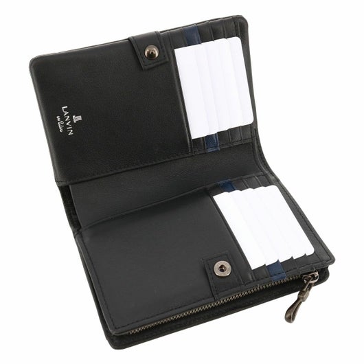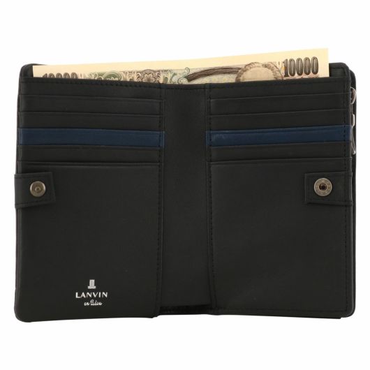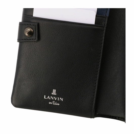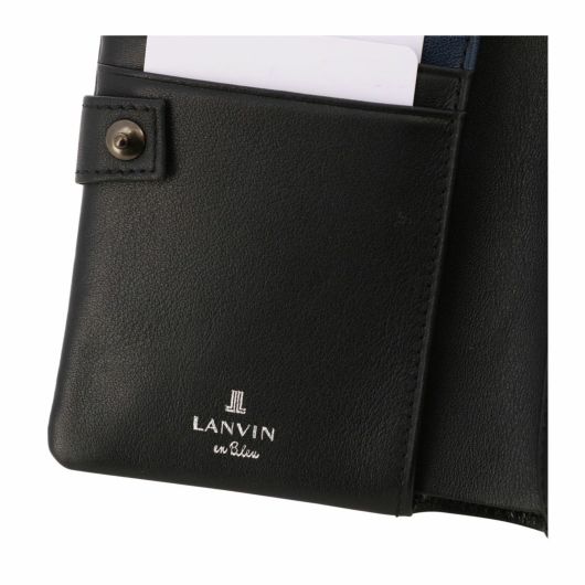 姫路のタンナーで鞣された、国産レザーの風合いを活かして作られたランバンオンブルーの二つ折り財布。革の特徴をデザインに表現するため、縫い代の目立たない「袋縫い」で縫製しています。また、この縫製方法は、頑丈に仕上がる事も特徴の一つです。本体パーツには、シンプルになり過ぎないように、ブランドロゴが入ったオリジナルのメタルブローチをアクセントに加えています。