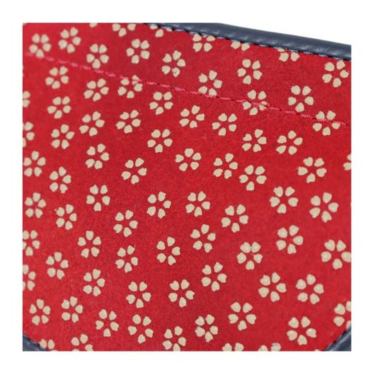 小桜が散りばめられた美しく使い易い二つ折り財布です。前面のBOX式の小銭入れで小銭の出し入れがスムーズです。鹿革をなめして、上から漆で柄付けするという、約400年ほど前から行われている日本を代表する革製品を使用。鹿革は軽量で、しなやかで強く、やさしい自然の感触を、長く楽しむことができるレザーです。使い込むほどに味わい深くなり、愛着の湧く逸品です。