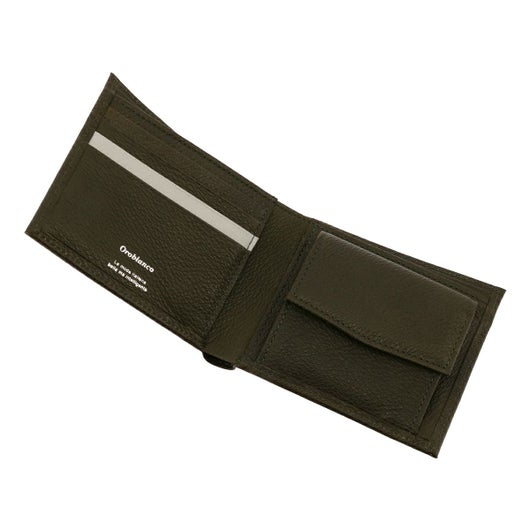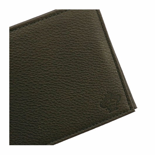 内装にワンポイント革の変化を付けたポインテッドシリーズ二つ折り財布。国産のステアを使用し姫路のタンナーで革を生産しました。