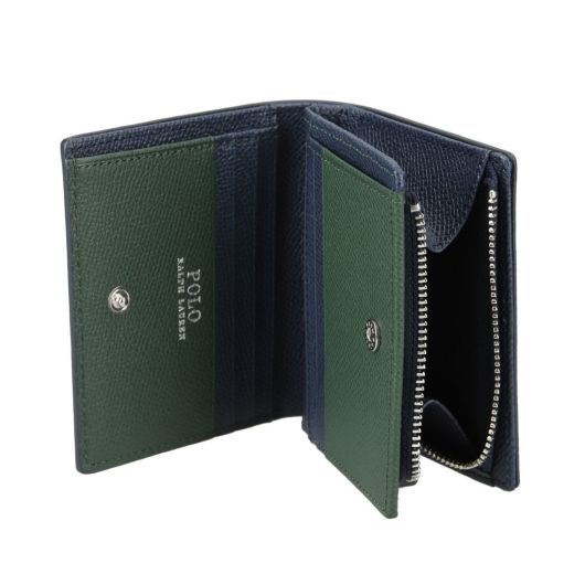 ニュー コントラストシリーズのL字ファスナー小銭入れ付きミドルウォレット。牛革にエンボス加工を施し汚れや傷が目立ちにくい素材です。内装生地にはポニーロゴのプリント、100%リサイクルポリエステル素材を使用しています。