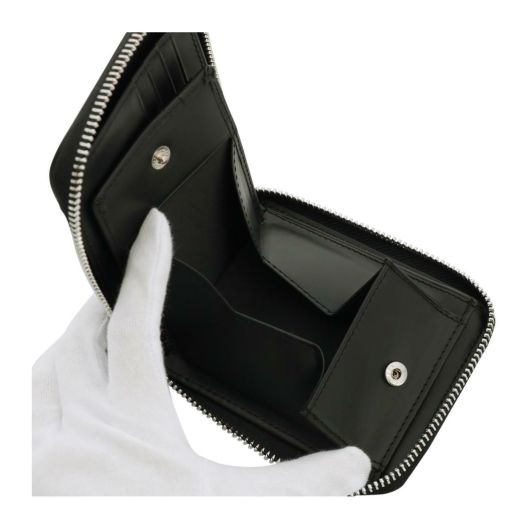ラグジュアリーなオリジナルモノグラムを転写プリントしたPVCを使用したシリーズ。このお財布は見開き部分にカードポケットを配置し、右側のカードポケットの下にBOX型コインケースを設置しているので、カード段が多い造りになっています。収納力たっぷりですが、ファスナーを閉じればコンパクトにまとまります。