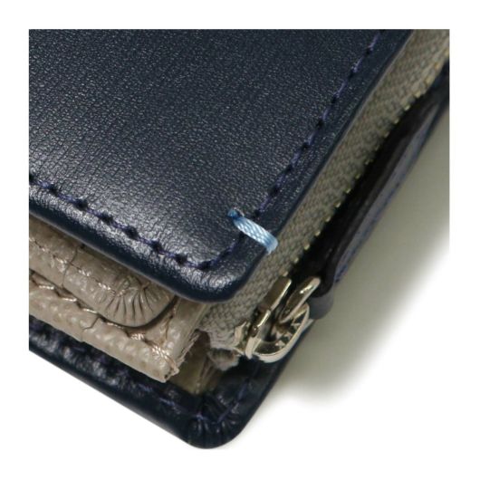 札室が2室とベラ付きファスナー小銭入れがついた二つ折りタイプの財布です。高い収納力でありながら、二つ折り財布のコンパクトなサイズ感が魅力です。