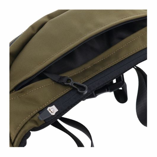 本体生地には、引き裂きに強く耐摩耗性に優れたCORDURA Hollofil AIR(Ballistic Nylon)を使用。表面には撥水加工が施されており、中空糸を使用することで軽量化を実現しています。また、付属革にはスコッチガードレザーを使用しており、耐水性と耐久性を兼ね備えています。さらにパーツやブランド表現などディティールにもこだわり、機能的で使い勝手の良い仕様を実現しました。