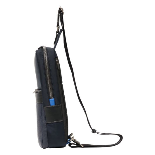 上品なテイストのカジュアルワンショルダーバッグに、3種類の素材を巧みにMIXしたLANVIN en Bleuのワンショルダーバッグ。ベルト状のストライプエンボス加工がブランドらしい洗練されたポイントとなっています。バッグを背負った状態でメインルームへ接続することができる、便利な背面ファスナーが搭載しております。