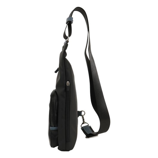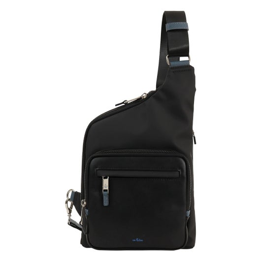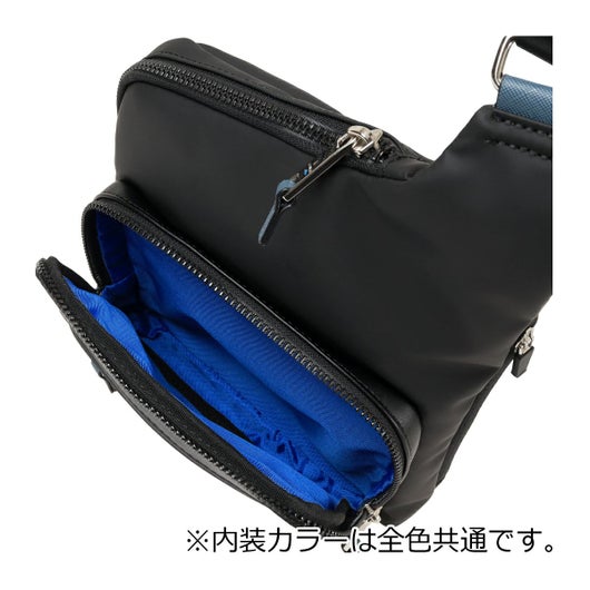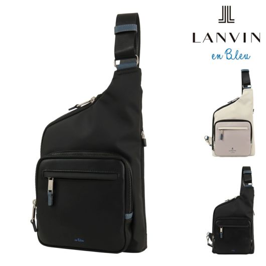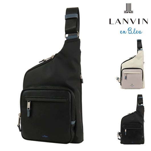 ブルーカラーのポイント使いしたサフィアーノ型押しの合成皮革 (PVC) に、 フロントポケットの合成皮革 (PU) と本体素材の 3 素材 MIX で LANVIN en Bleu らしい 遊び心のある新しい形を取り入れたカジュアルシリーズです。