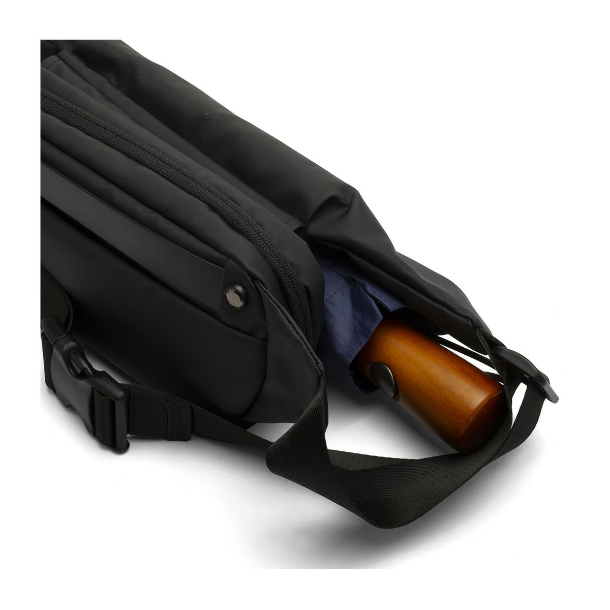 【コンパクトでも収納力抜群】取り出しが簡単なセミオープンコンパートメントでペットボトルや傘を楽々収納!内側にも多数のポケットが付いているので、必需品をまとめて運ぶことができます。