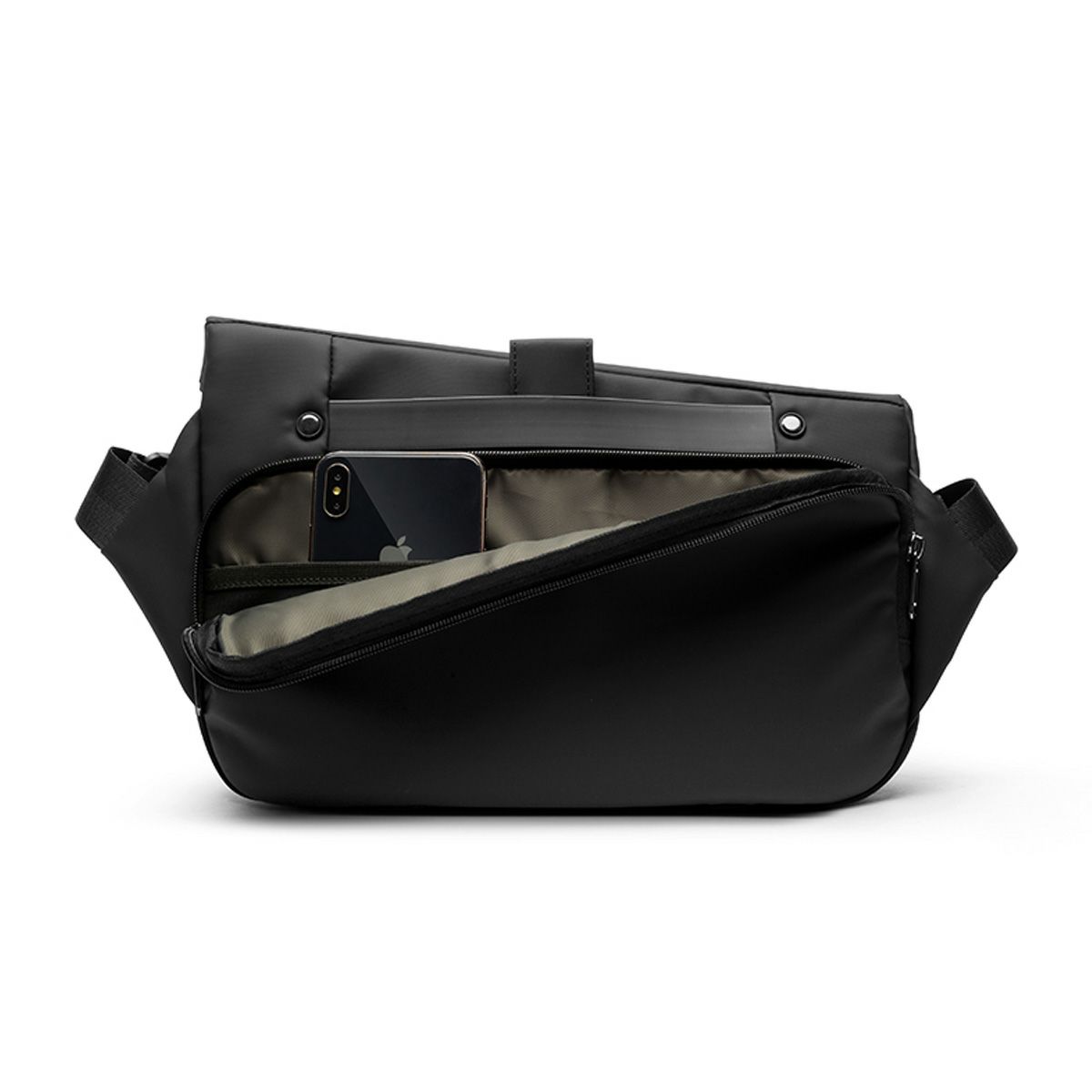 【マグネットロックの中央ポケット】荷物が取り出しやすく開け閉めが簡単なマグネットロックを採用。ガバッとほぼ円形の形まで開くことができます。