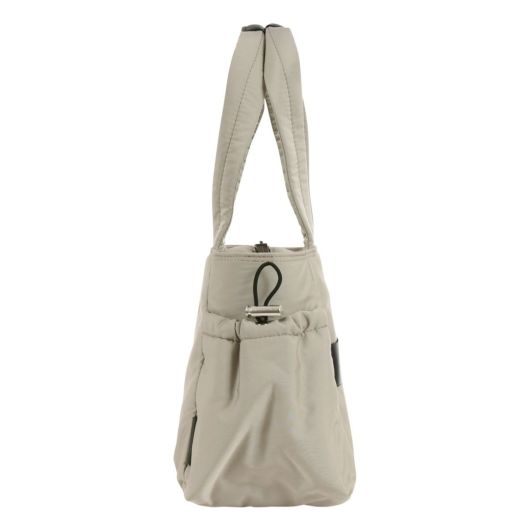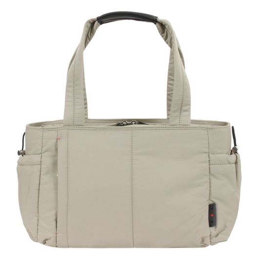 タウン用、スポーツジム・ゴルフ用、トラベルに対応したタウントラベルカジュアルシリーズ。メイン素材はボンディング生地を使い、ふわふわ軽量、ジェンダーフリーテイストに仕上げました。トートボストンは厚マチ大容量&軽量が魅力。ボストンのマチ部には小物類がさっと取り出せるコード付ポケットがアクセントに。前面にはさっと小物が取出しできるタテファスナーポケット付。