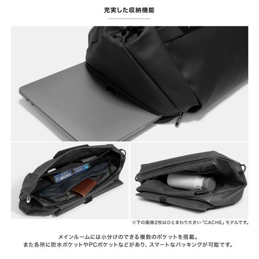 必要に応じてワンタッチでボストンバッグに変身!最大21Lに拡張するスリングバッグ『CACHE LITE(キャッシュライト)』は、シーンや目的に合わせてスリングからダッフルに瞬時にトランスフォーム(変形)できる大容量のハイブリッドバッグです。