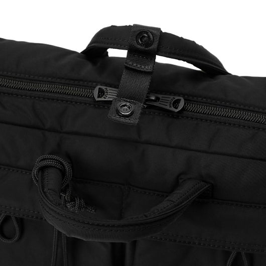 オン・オフどちらのシーンでもお使いいただける2WAYパックは、手持ちと背負いの2通りの持ち方ができるB4サイズのブリーフケースです。メイン収納部のファスナーは大きく開くため、荷物の出し入れをしやすくしています。内装に13inchのPCが収納可能なクッション材入りのポケットを設けています。別売りのC.E.STRAP(キャリングエクイップメントストラップ)を装着すると、3WAYブリーフケースとしてお使いいただけます。