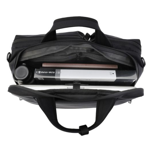無駄を省いたデザインとオールブラックのカラーリングがソリッドなブリーフケース。