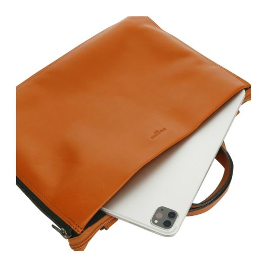 タンニン鞣しの牛革を用いて二本手ミニブリーフケース。底ファスナーで拡張可能な仕様なので荷物の量に合わせてバッグの内容量を変えることが出来ます。