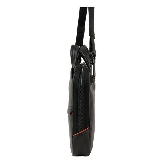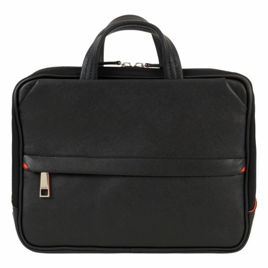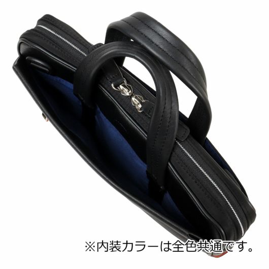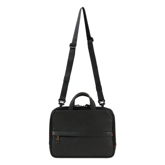 前面にはサフィアーノ型合成皮革を、ハンドルには手に馴染む牛革を、そしてマチと背面にはナイロンを使用した異素材コンビでスッキリとしたデザインのきれいめコンパクトビジネスバッグ。ショルダーベルトが搭載し、クラッチバッグやショルダーバッグとしてもお使いいただけます。