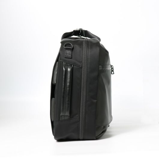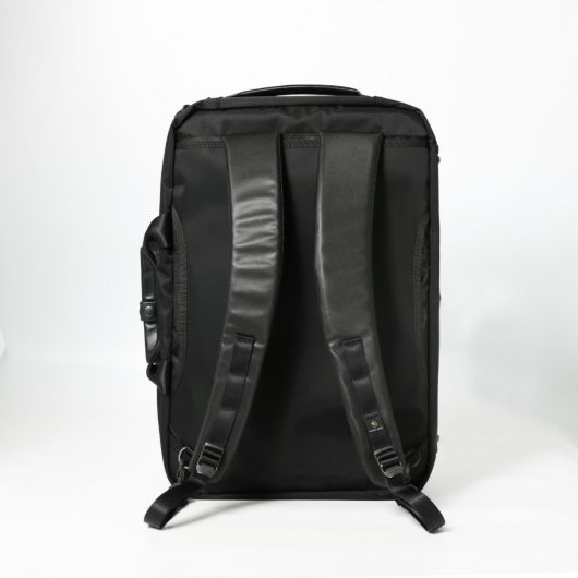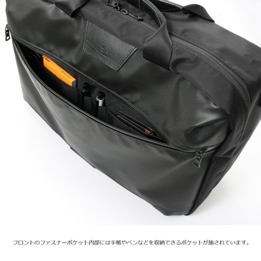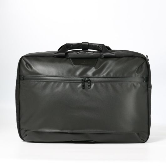 本体素材は環境汚染の誘因となる溶剤等を約90%排除された環境に優しいエコな高耐久ポリウレタンを表面にコーティングした600dポリエステル生地を使用しています。表面は綾織りをイメージした離型紙を使用することで微妙な光沢感を持たせながらゴムライクな質感が特徴的な素材です。付属生地は、タテ糸ヨコ糸に120dの不純物の少ないナイロン糸、東レ(株)のミラコスモRを使用しています。カルゼ織りすることで上品な光沢感のあり、斜めにくっきりと入った畝が特徴の生地です。さらに裏面にPVC加工を施し防水性とハリ感を持たせていま