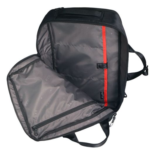 ビジネスシーンにもマッチするBLACK x GREYのロゴネームは本企画用にオリジナルデザインとなります。バックパックとしてもブリーフケースとしても使える2WAY仕様。PCスリーブに加え、小物の収納に便利なインナーポケットも充実。キャリーケースにセットできるスマートスリーブ仕様でキャリーケース使用時にも快適に使用可能です。キャリーケースにセットできるスマートスリーブ仕様。
