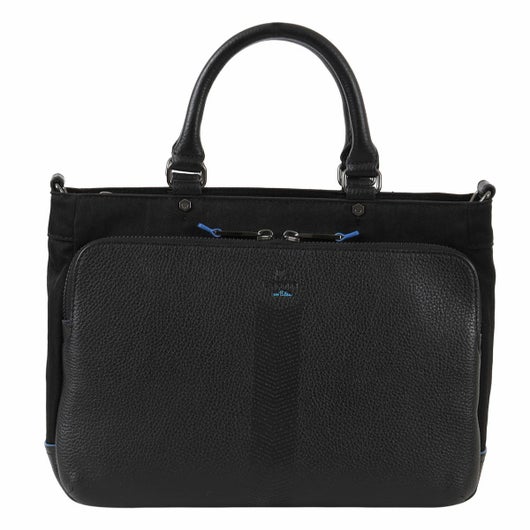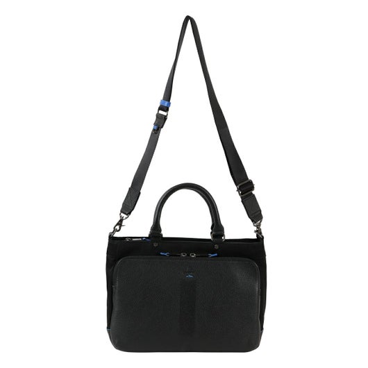 レザーとナイロンを組み合わせたスタイリッシュなデザインが特徴の、ランバンオンブルーのビジネスカジュアルドライビングトート。本体素材は、弱撥水加工を施した牛革とナイロンを使用しております。またショルダーベルトが搭載し、トートバッグとしてもショルダーバッグとしても使える2WAY仕様です。カラーは落ち着いた色味を選び、ビジネスシーンにもピッタリです。ON・OFFどちらのスタイルにもマッチするため、日常の様々なシーンでご利用いただけます。