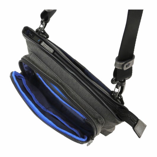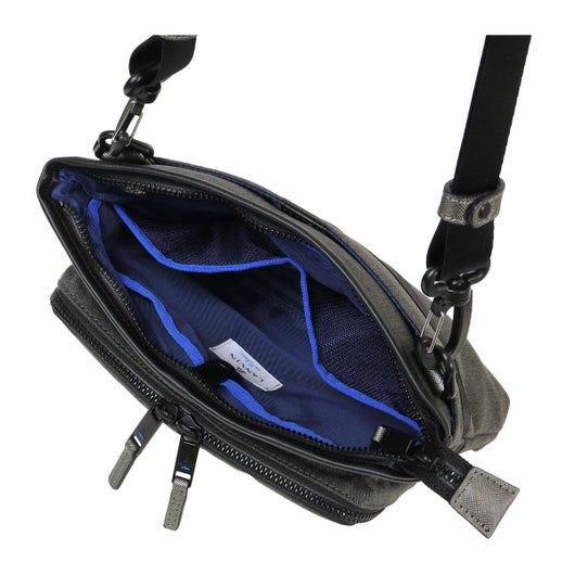 好評な LANVIN en Bleu 「SHORT」 シリーズに季節感のある 2024AW 限定素材。天然素材の様なナチュラルな雰囲気と耐ピリングなどの機能性が魅力になります。秋冬らしい素材感のあるウールライクの素材感で、しっかりとした太さの 300D のカチオン糸を使用してヘリンボン組織で織られたマテリアル。クラッシックなヘリンボン柄と杢調の表情がノスタルジックな雰囲気を演出します。シワになりにくく、 毛羽立ちを防いで毛玉になりにくい特殊な加工を施しています。表面には撥水加工を施し、裏面にカツラギを溶剤で圧着してるので、汚れが付きにくく、水が中に染み込みにくい鞄用素材として仕上げています。