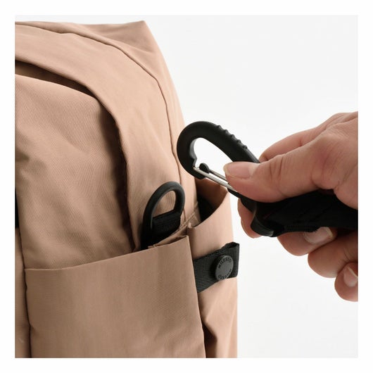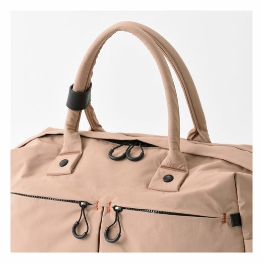 外装には仕分けに便利な2つのフロントポケット、ペットボトルや傘を収納できる両サイドのポケット、キャリーオンにも対応する背面のファスナーポケットを搭載し、ミニマルなデザインとは裏腹に使い勝手を考え抜かれたポケットの配置が魅力です。