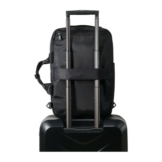 ビジネスシーンにもマッチするBLACK x GREYのロゴネームは本企画用にオリジナルデザインとなります。バックパックとしてもブリーフケースとしても使える2WAY仕様。PCスリーブに加え、小物の収納に便利なインナーポケットも充実。キャリーケースにセットできるスマートスリーブ仕様でキャリーケース使用時にも快適に使用可能です。キャリーケースにセットできるスマートスリーブ仕様。