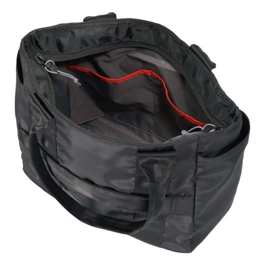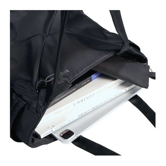 ビジネスシーンにもマッチするBLACK x GREYのロゴネームは本企画用にオリジナルデザインとなります。キャリーケースにセットできるスマートスリーブ仕様でキャリーケース使用時にも快適に使用可能です。底ビョウ(5点)を採用し、自立性を高めています。