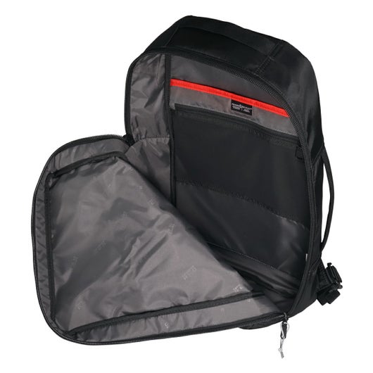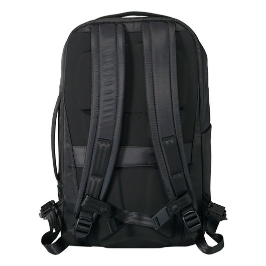 ビジネスシーンにもマッチするBLACK x GREYのロゴネームは本企画用にオリジナルデザインとなります。PCスリーブに加え、小物の収納に便利なインナーポケットも充実。背面にはEVA素材を採用し、バックパックと背中の間に空気が流れる空間ができ、長時間背負っても快適です。キャリーケースにセットできるスマートスリーブ仕様。