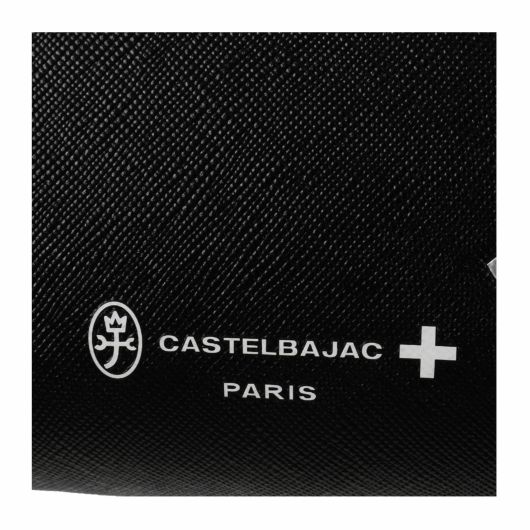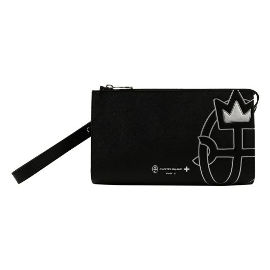 枠からはみ出たようなブランド家紋デザインが特徴の、カステルバジャックのカジュアルなクラッチバッグ。ブランド家紋の王冠部分がシルバーになっており、目を引くアクセントとなっています。さらに、丸底デザインにより持ちやすく、縁は切り目とヘリ返しを施しているため、形が崩れにくく長くお使いいただける造りになっています。