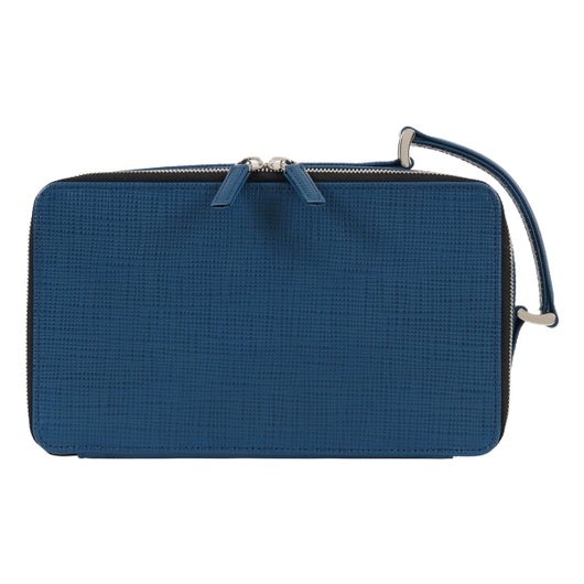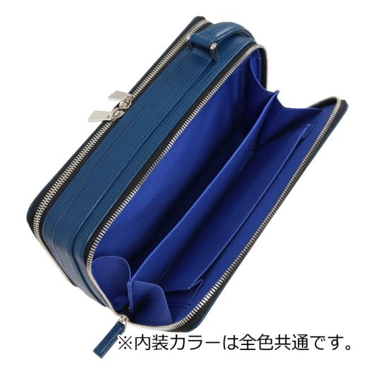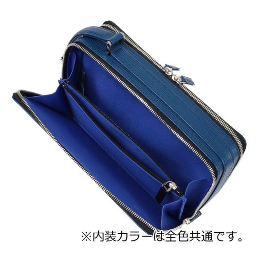 傷が付きにくく丈夫で、長期間同じ表情を保ってくれる実績のある革を凹凸を利用したツートンカラーに仕上げたZEBDA「ゼブダ」シリーズ。少し大きめで不規則な角シボの型押し牛革を本体に使用。染色は凹部を明るく凸部を暗めにし、ツートンカラーで表現。顔料で発色が良く、傷もつきにくく、非常に丈夫な革で時間が経ってもへたれにくい点が特徴。ランバンオンブルーのブランドカラーでもある“ブルー”は、今回は深く鮮やかな“サファイアブルー”に。ロゴはクロニッケルの極薄の金具を熱圧着で密着させており非常に繊細で上品な表現に。ビジネスシーンにおいても、使いやすいデザインに仕上げています。