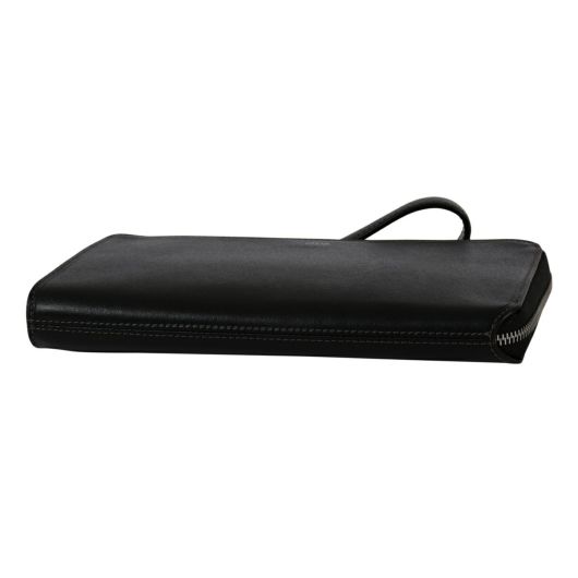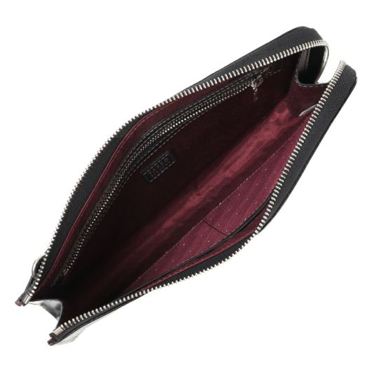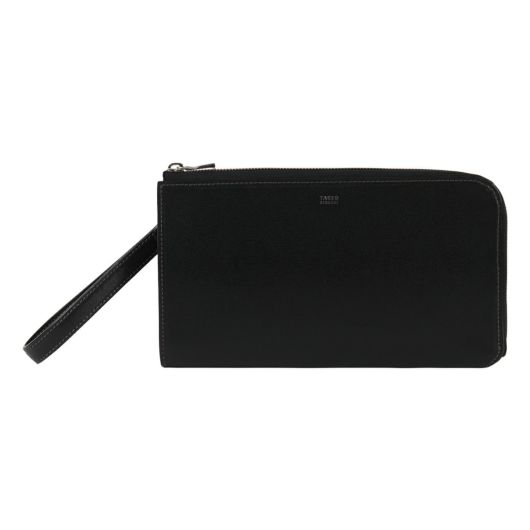 上質なイタリアンエンボスレザーを使用した、タケオキクチのレザークラッチバッグ。ストラップ付きで、手首に付けて固定できます。繊細で上品な雰囲気が魅力。一般的な型押しレザーと違い、タンナー独自のクロム鞣しを施すことで柔軟性に優れた素材の仕上がりとなっています。