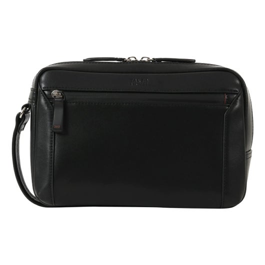 タケオキクチのマイクロファイバーレザーを使用したメンズレザーポーチ。ブランドらしい落ち着いた素材の風合いを活かしたデザインは、冠婚葬祭からカジュアルシーンまで、様々な環境でご利用いただけます。