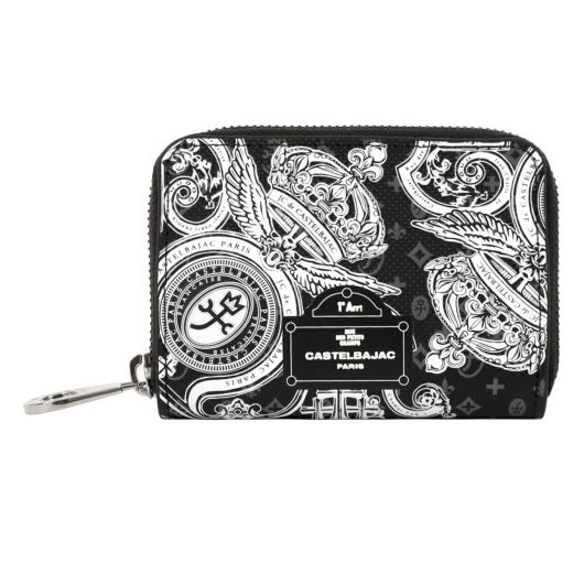 ポップなイメージを一新した、攻めたデザインのカステルバジャック。 複数のプリント版を重ね、立体プリントも施すことで奥行が感じられる ワンランクアップした財布を目指しました。フランスの世界文化遺産、世界一華麗といわれるヴェルサイユ宮殿の黄金に輝く「王の門」からインスピレーションされたアートを、立体プリントで表現したカジュアルシリーズです。よく見るとクロスやハトなど、バジャックらしいモチーフが隠れています。パリならではの標識をモチーフとしたロゴもポイントです。