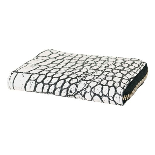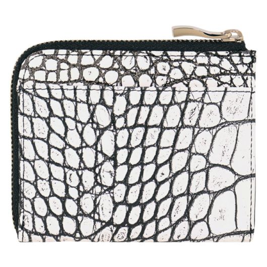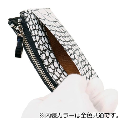 。表面にクロコの型押しが施された上品で高級感漂うデザイン。ファスナーはYKK社製のものを使用しており開閉もスムーズ。視認性が良く薄くてもカードやお札などをしっかりと収納できます。小銭入れがオープンポケットタイプなのでサッと取り出すことができます。