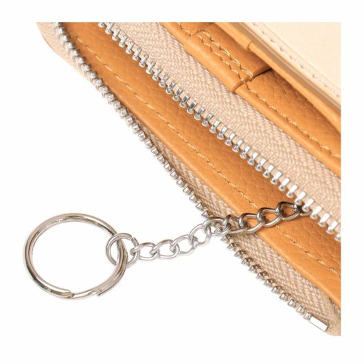 背面:L字ファスナー式小銭入れ×1(内側:フリーポケット×2、キーチェーン付きキーリング(取り外し可))