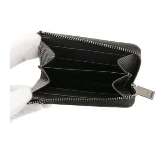 良質なレザーにエンボス加工を施しました。光沢のあるガラスレザーをライン状に切り替えをしたデザインで、ランバンコレクションらしいシャープな仕上がりとなっています。シンプルで機能性も兼ね備えた小銭入れでギフトにもおすすめです。表のメタルのロゴマークがさりげないポイントになっています。