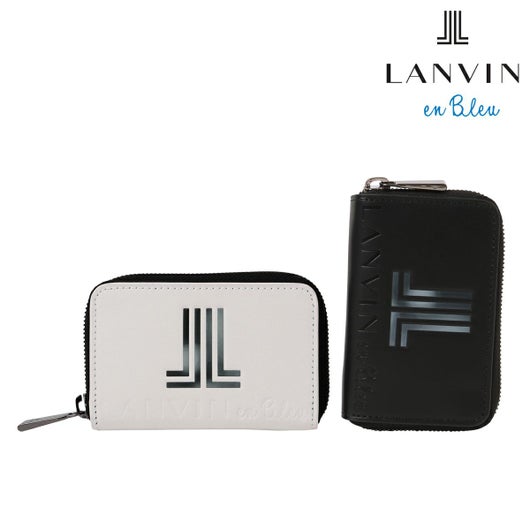 ランバンオンブルーの文字を型押しで大きく表現した、ラウンドファスナー型小銭入れ。ブランドのシンボルマークである「JL」ロゴをグラデーションで用いた、シンプルでもエッジーな革小物です。