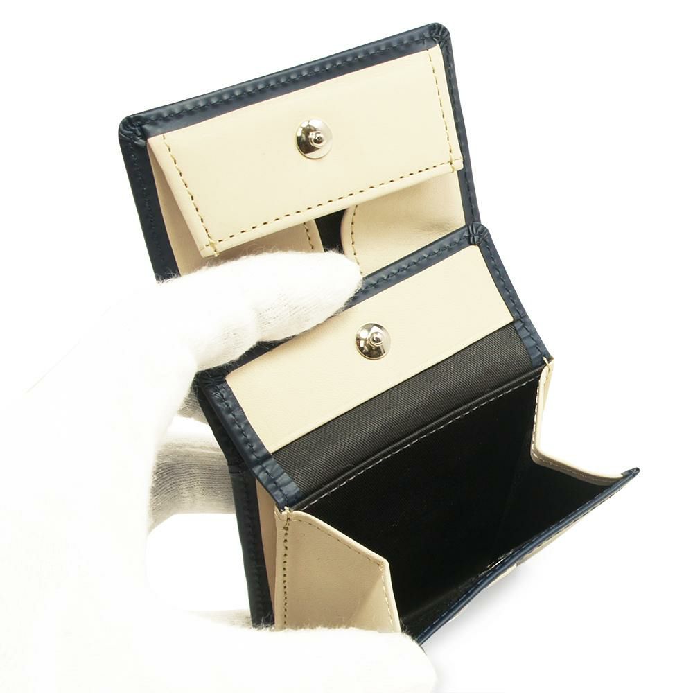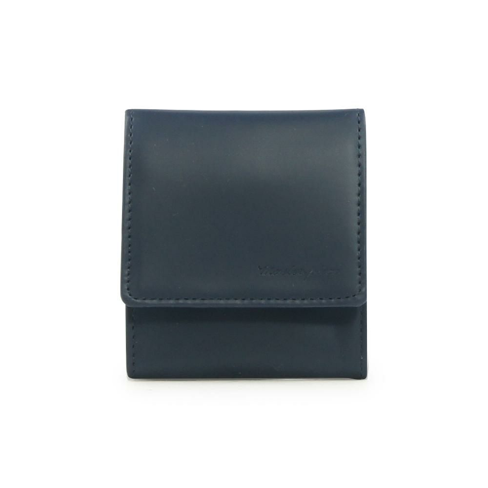 本体素材には北米産のデイリーステアに特殊な加工を施したレザーを使用しています。表面を平らな状態にするため磨き上げ、さらにイタリアから取り寄せている特殊なウレタンをのせ、通常の仕上げの工程を二度行い、時間をかけ丁寧に作られたレザーです。表面をマットなゴム調に仕上げたさらっとしたなめらかな触り心地が特徴となります。この加工をすることにより、水濡れに比較的強い革に仕上がっており、靴などにも使用されています。外装をシンプルにすることで様々なシーンに対応できるようになっており、小銭入れの分割や小物ポケットを備えることで、より細かく分類できるようになっています。
