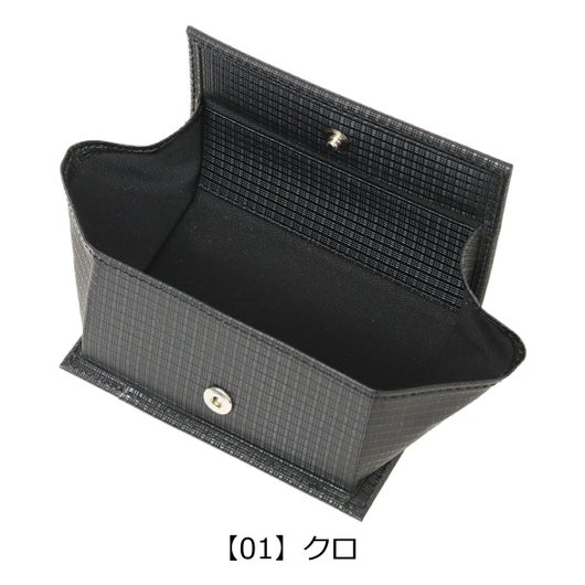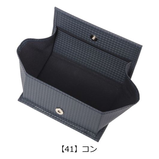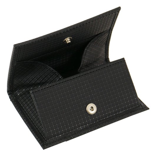 薄さにこだわったボックス型に開く小銭入れです。三つ折りのお札も収納でき、背面にはカード類も入ります。