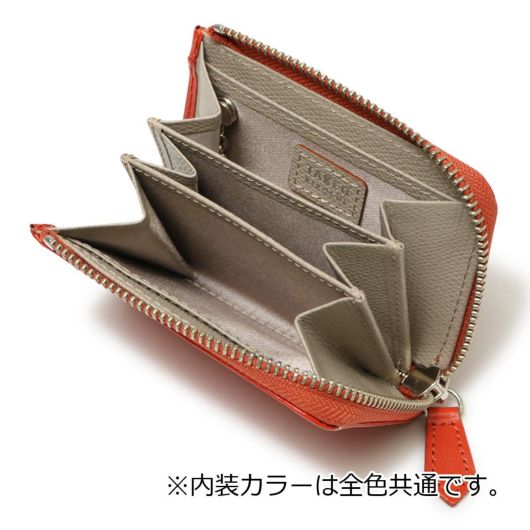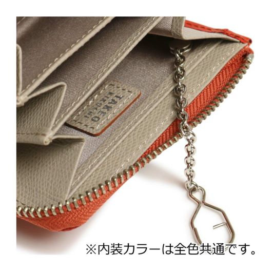 使いやすいL字ファスナー開閉で、仕切り付きで小分けのできる3ルーム仕様。カード収納も嬉しいポイント。