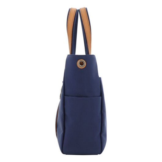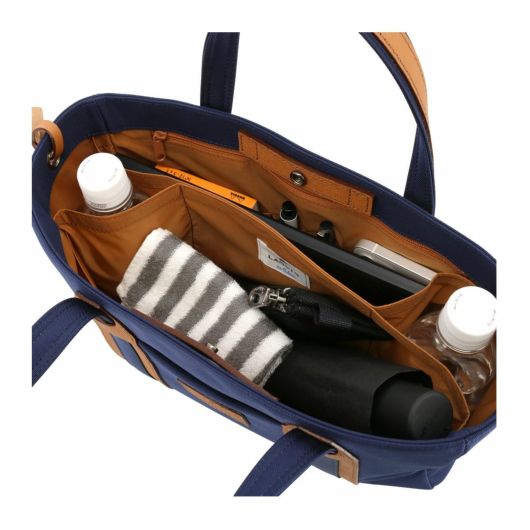 また、ランバンオンブルーのコンセプトである異素材ミックスは、撥水性のあるナイロン生地とキズや擦れに強い付属革で表現されています。