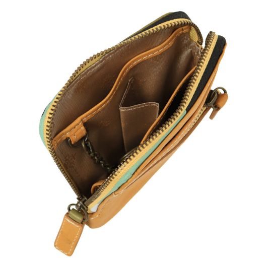 「色遊び」がテーマです。シームレスなパッチワークに加え、ファスナーテープにもシルクプリントをほどこした新鮮かつモダンな印象のお財布。