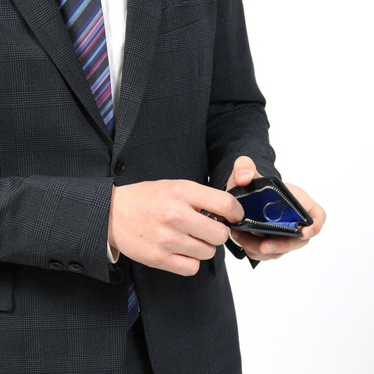 LANVIN en Bleuから当社オリジナルのWEB限定モデルが登場。上質な牛革を使用し、表面は細かい型押しを施したサフィアーノ調の高級感のある生地になっています。内装ポケット部分は少し明るめのネイビー生地をコンビカラーとして採用し、ブランドらしい遊び心を演出しています。ポケットや機能を増やしすぎず最低限の収納を縦長のスリムな形に収めたスマートキーケースです。