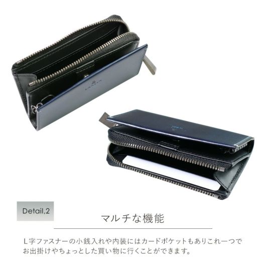 背面:L字ファスナー式小銭入れ×1(内側:カードポケット×1)
