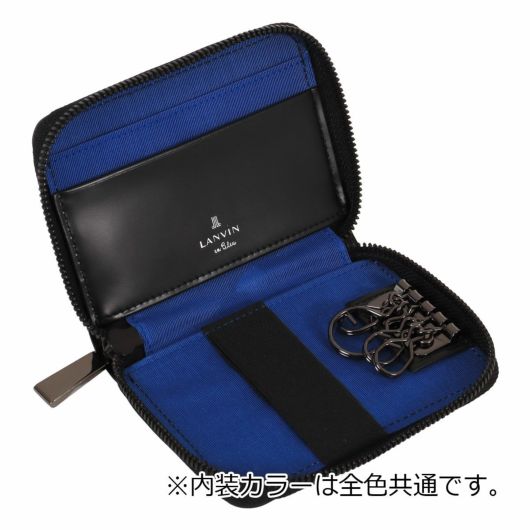 プレートと本体に押されたブランドロゴが繋がったように表現したモードなランバンオンブルーのキーケースです。プレートをあえて大きめにすることで全体のワンポイントにもなり、シンプルベーシックな中にも上品さを演出してくれています。