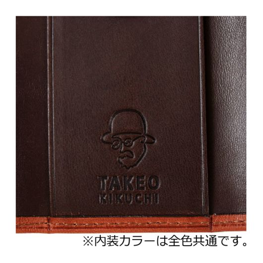 本体にはイタリアの歴史あるタンナーによる最高峰のナチュラルオイルヌメを採用。ネン引きや素押し部分を見るとわかるように、革らしさが充分に表れている素材で、革独特の経年変化をお楽しみ頂けます。【TAKEO KIKUCHI 40th Anniversary】内装には深みのあるチョコ色の革を採用。40周年を記念したタケ先生のアイコンが素押しされています。